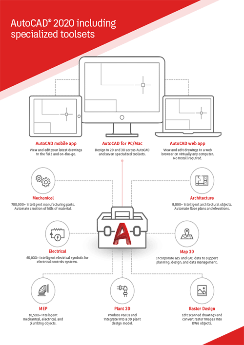 AutoCAD® includes industry-specific features and libraries for architecture, mechanical design, electrical design, and more.